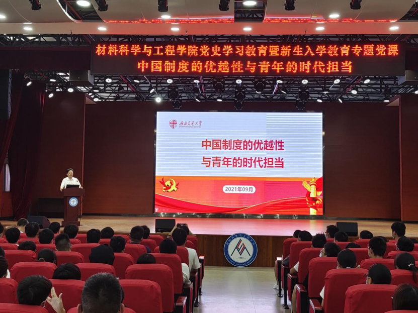 2021年9月28日16:00,学校党委副书记、纪委书记张学龙应大发在线体育投注平台 党委、纪委的邀请,在犀浦校区一食堂三楼为大发在线体育投注平台 新生讲授党史学习教育暨新生入学教育专题党课,主题为《中国制度的优越性与青年的时代担当》。学院党委书记陈勇、党委副书记章春军学校纪委办胡博、学校党政办薛逸凡、学院辅导员黄德明郑纪伟许欢、董海霞以及2021级全体新生参加了党课学习。党课由学院党委副书记章春军主持。