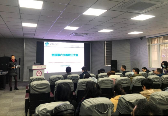 接着,陈勇书记做学院党建工作报告和个人年度述职。陈书记以“学党史 悟思想 办实事 开新局,让党建引领在学院建设中发挥更好作用”为题,从“理论武装和爱校教育扎实推进”、“安全稳定零事故”、“从严治党有力推进”、“教工思政和师德师风建设不断加强”等几个方面对学院党建工作进行了述职,并表示在接下来一年中,将进一步贯彻“人民为中心”的发展理念,搭建更多教师交流平台,进一步强化教师思政和师德师风建设,强化纪律建设,筑牢工作基础。随后,陈勇书记从把握发展大局、为师生办实事、遵章守纪、不足之处四方面进行了个人年度述职,强调团结就是力量,从点滴开始,共同努力为学院发展和改变贡献力量。