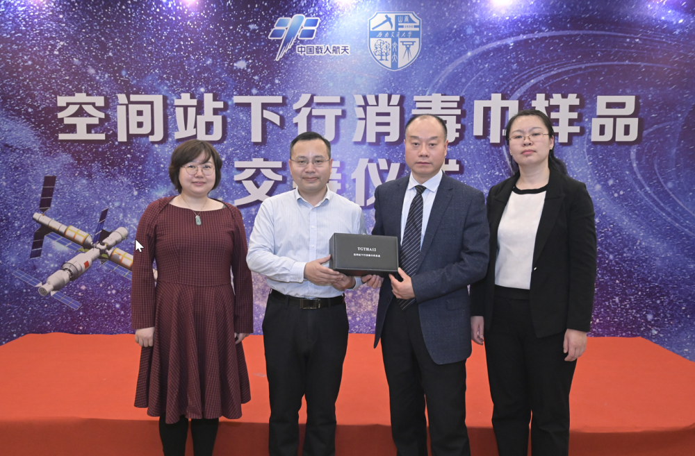 伴随着神舟十二号返回地球,由西南交大自主研制的载人航天抗菌材料也一同从天和核心舱返回。1月16日,空间站下行消毒巾样品交接仪式在北京举行,中国空间技术研究院向西南交通大学移交了空间站下行消毒巾样品盒。该批样品是由我校周祚万教授、徐晓玲副教授团队研制的载人航天系列抗菌材料的一部分,由天舟二号货运飞船运往空间站,经神舟十二号航天员乘组使用后,搭载返回舱回到地面,用于开展跟踪评价和相关科学试验。据悉,这是中国空间站第一批下行的应用试验样品。