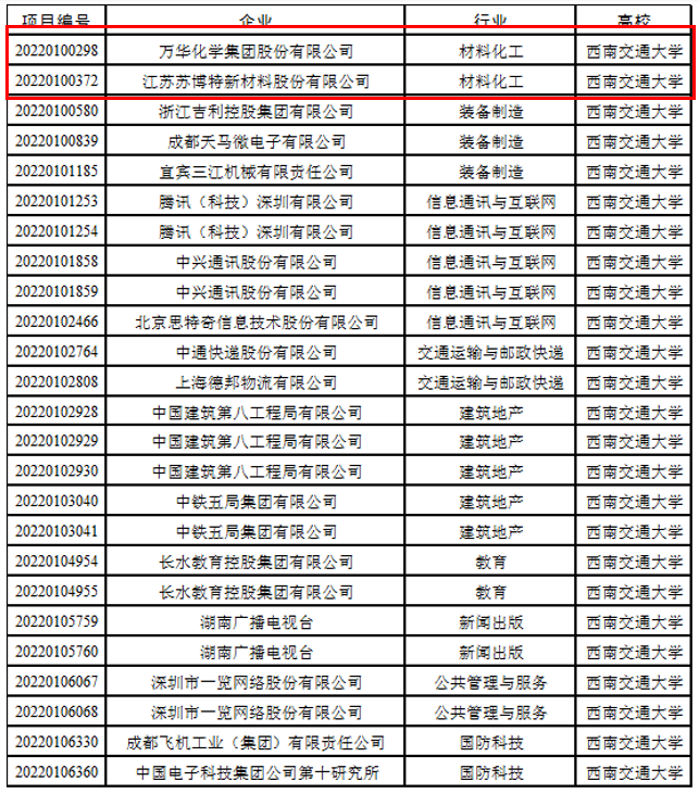 正式获批教育部供需对接就业育人项目2个。获批的2个项目均为人力资源提升类项目,一是与江苏苏博特新材料股份有限公司合作申报的“基于工学深度合作的校企协同育人模式研究”项目,二是与万华化学集团有限公司合作申报的“校企协同育人模式下的双导师制度研究”项目。