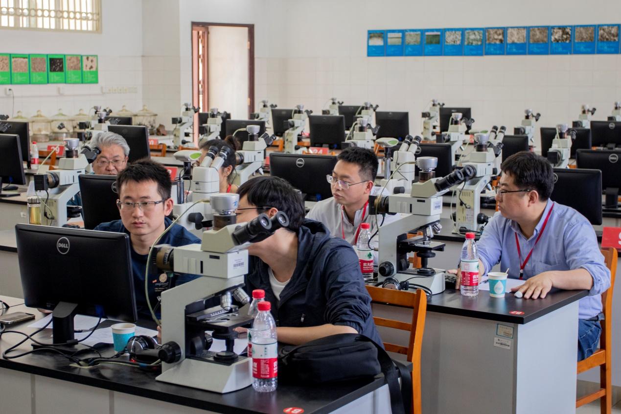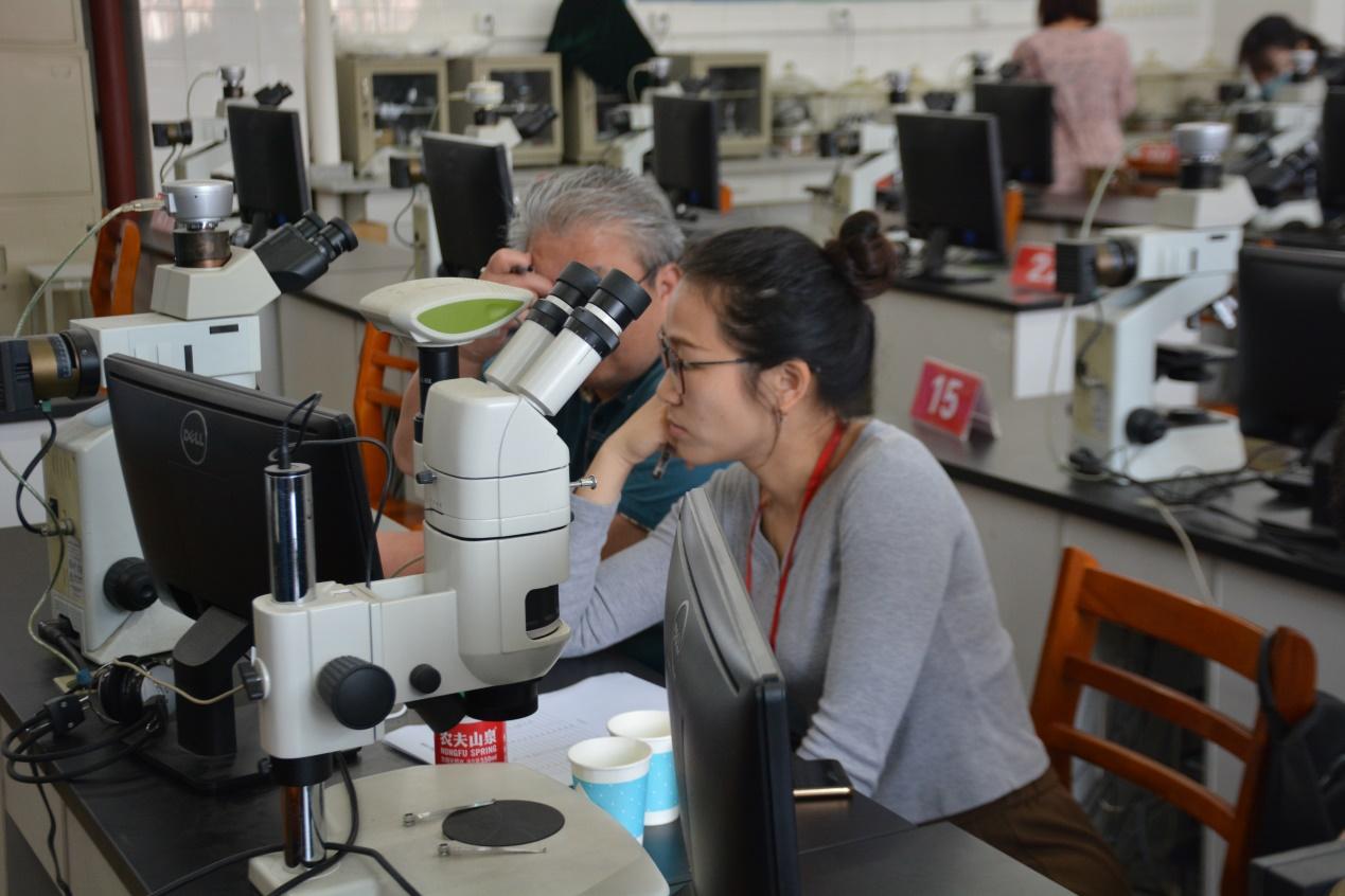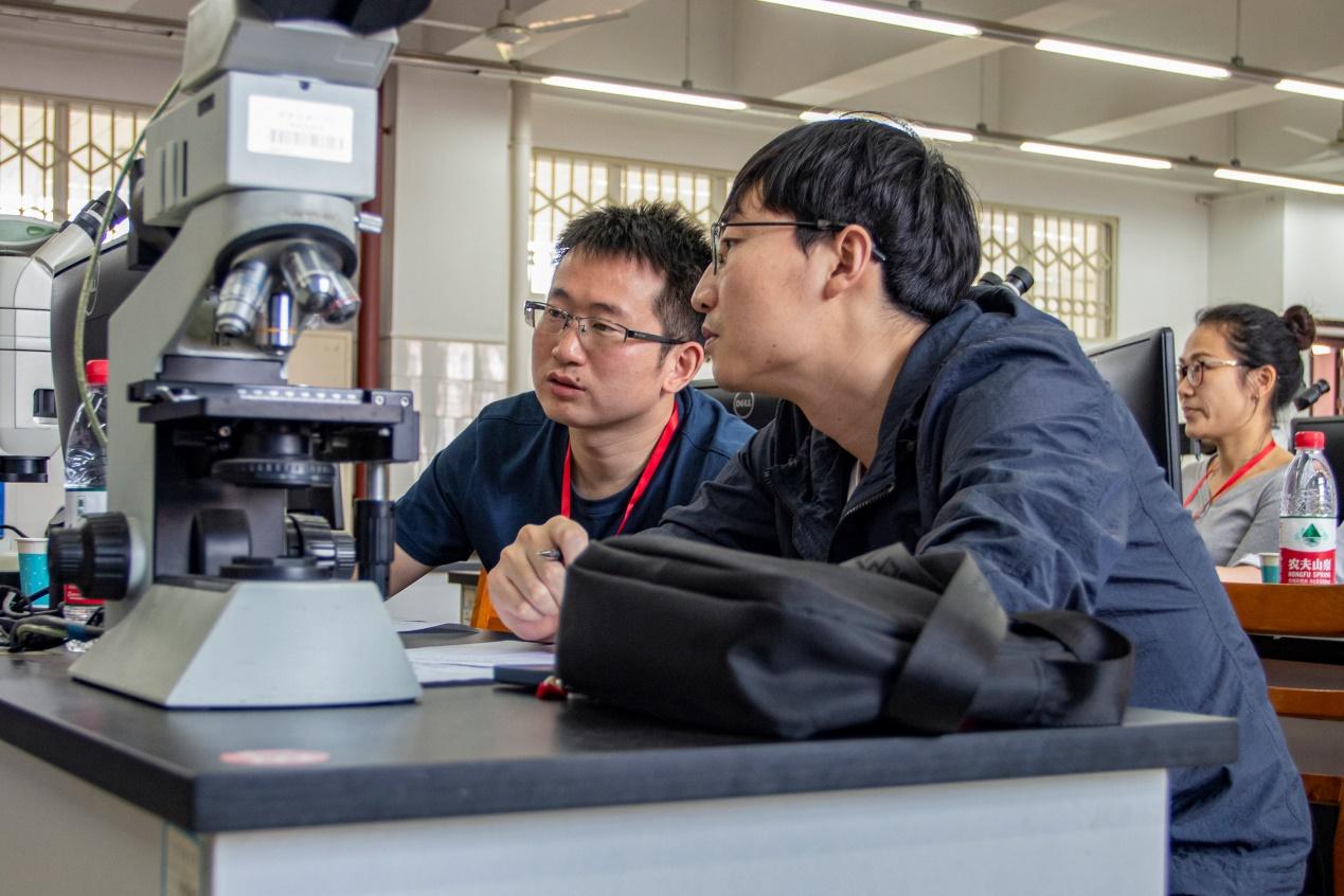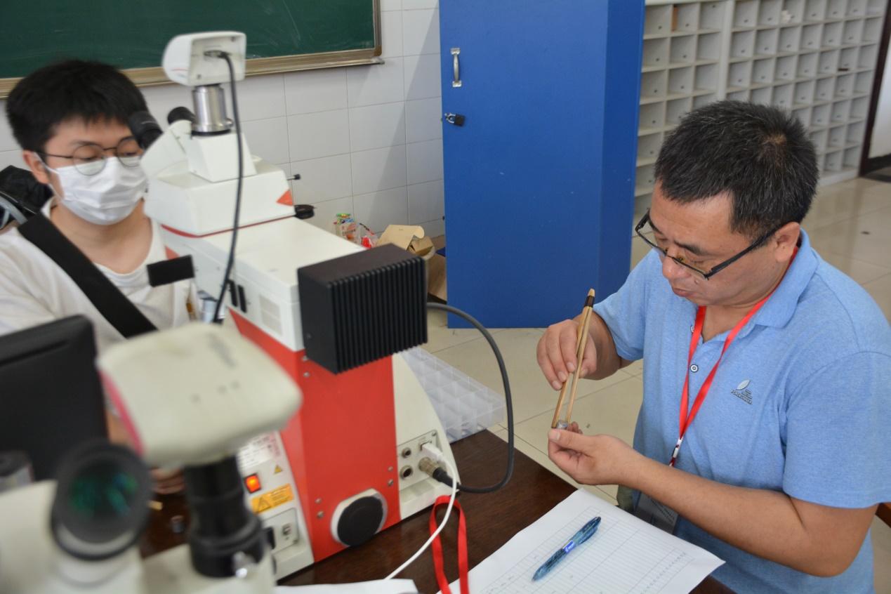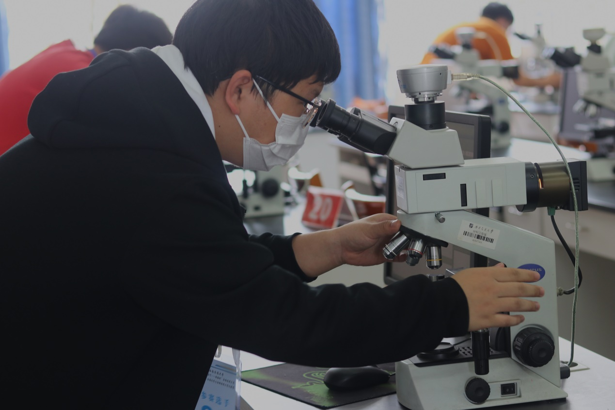 参赛选手进行显微镜观察