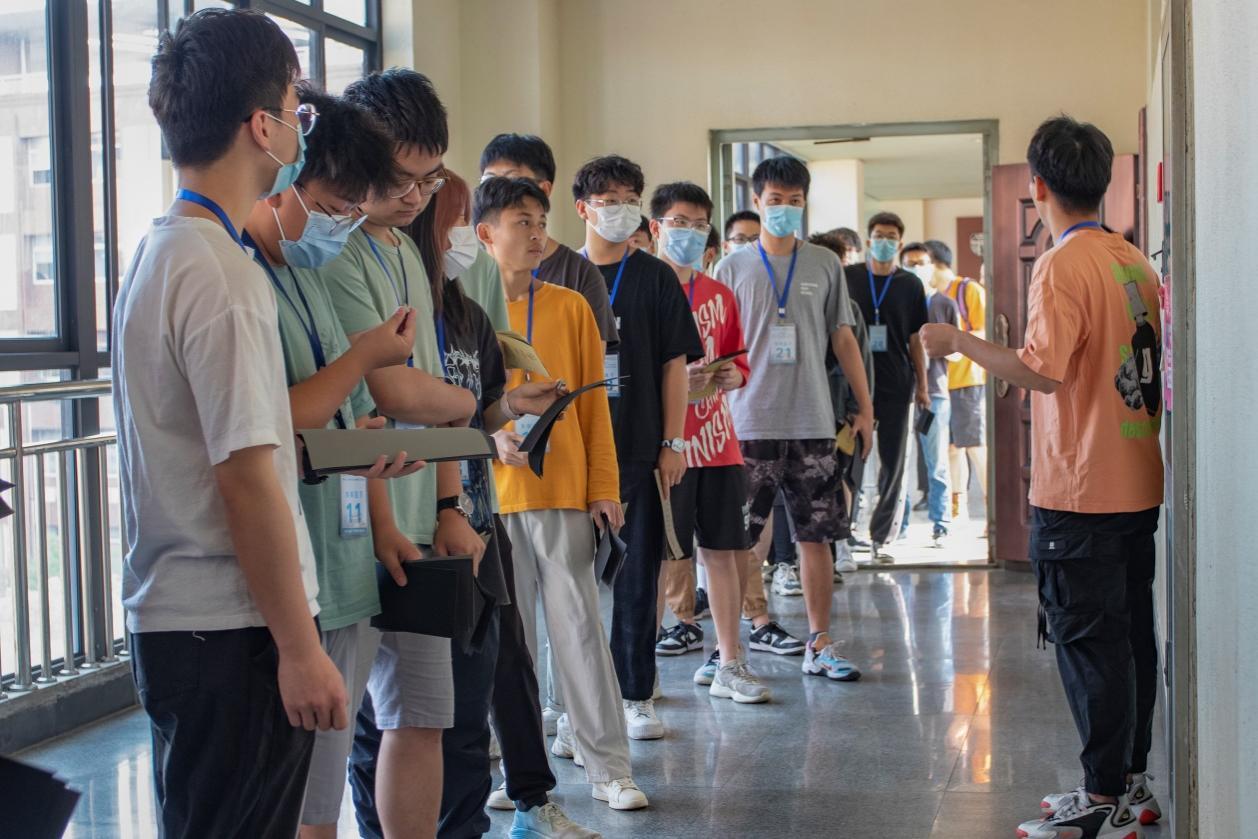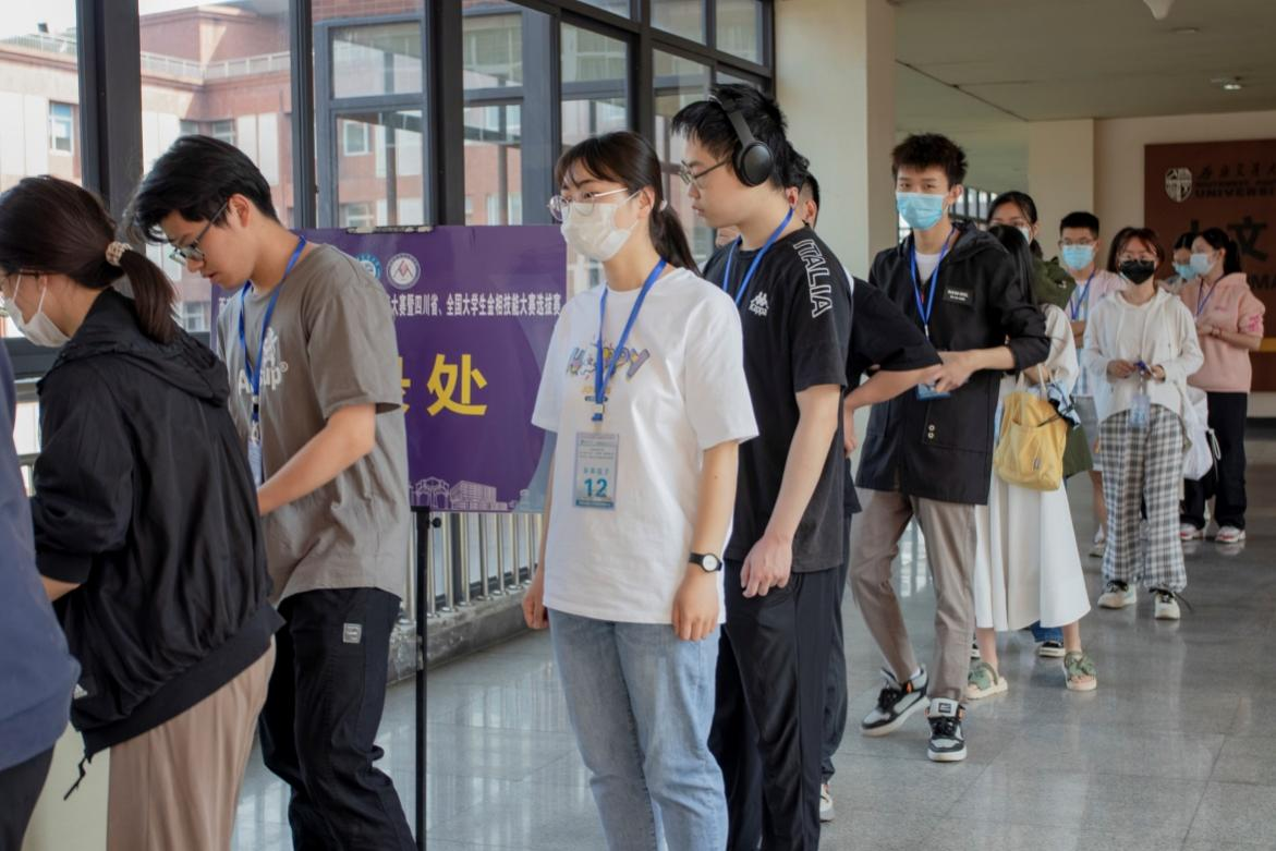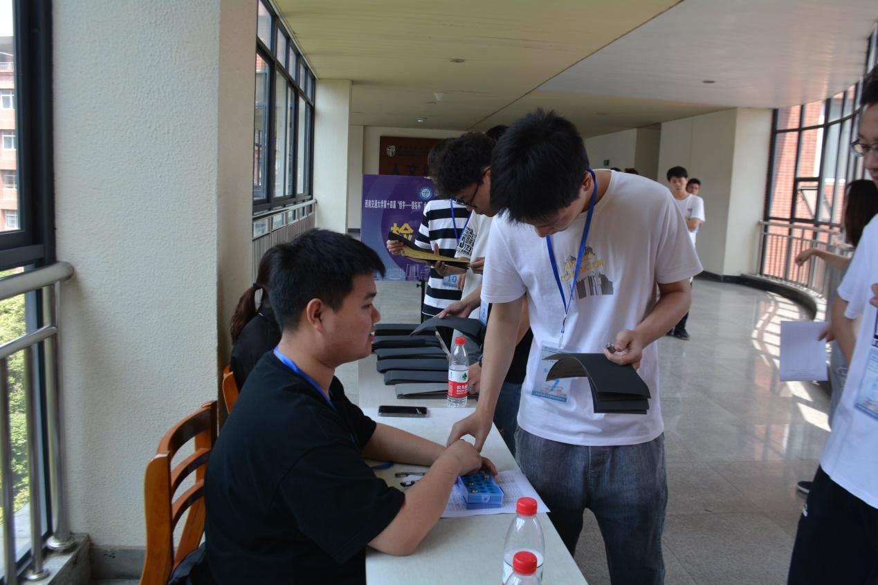 我校170名参赛选手和7名校外参赛选手被分为六组进行比赛。每组选手依次排序签到,领取比赛样品、比赛耗材入场。