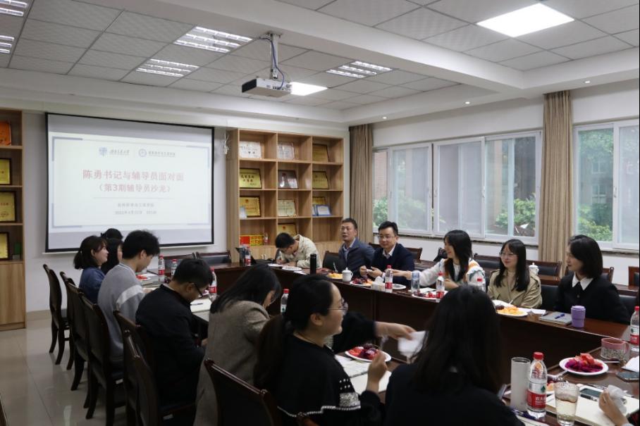 16:30,辅导员沙龙开始了,今天的地点在犀浦校区,氛围比较轻松。有时,院长朱旻昊和党委书记陈勇也会来参加沙龙活动,与全体辅导员“面对面”交流,一起聊工作、聊生活、谈困难、谈收获,听听大家的心里话,给大家鼓励指导帮助。这是为辅导员交流心得、分享经验、排解压力、提升能力所搭建的一个交流平台,是学院推进辅导员队伍专业化职业化专家化的重要举措。每周1次的辅导员工作例会,也是充电赋能的重要机会,除了汇报、研讨、谋划工作重点外,会上也经常开展工作实务培训,相互分享专项工作的经验。