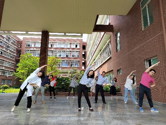 上午10:30,办公室外走廊响起了广播体操的音乐,辅导员开始了每天的集体锻炼时。无论工作多繁忙,是天晴还是下雨,大家都放下手头工作,到办公室附近空地舒展放松,给身体赋能,让眼睛放松。