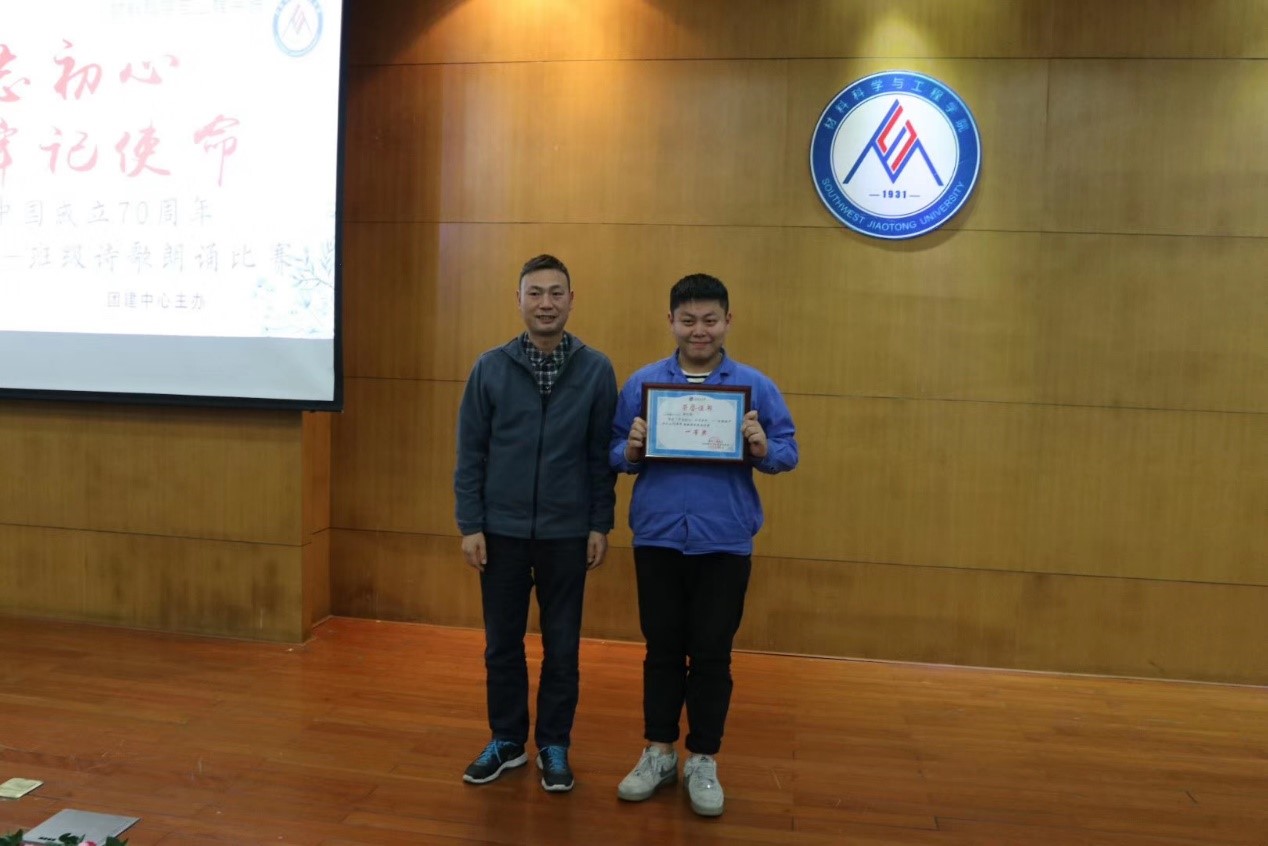 大二分专业过后,我们重新组建了新的班级,我也继续担任新专业班级班长,从此和同学一起努力,为建设一个正能量的优秀班级体而奋斗。在一次次的活动中,班级同学心往一处想,劲往一处使,我们班取得了学院诗歌朗诵比赛“特等奖”、校级示范团支部等荣誉称号。荣誉背后也有遗憾,我们秉持“聚是一团火,散是满天星”的高分子精神参加学校忠忱班集体答辩,虽然最后与其失之交臂,但通过此巩固了班级同学间的友谊,增强了班级凝聚力。感谢班级的同学们,一起读书学习,一起为了班级更好,我们始终在一起。