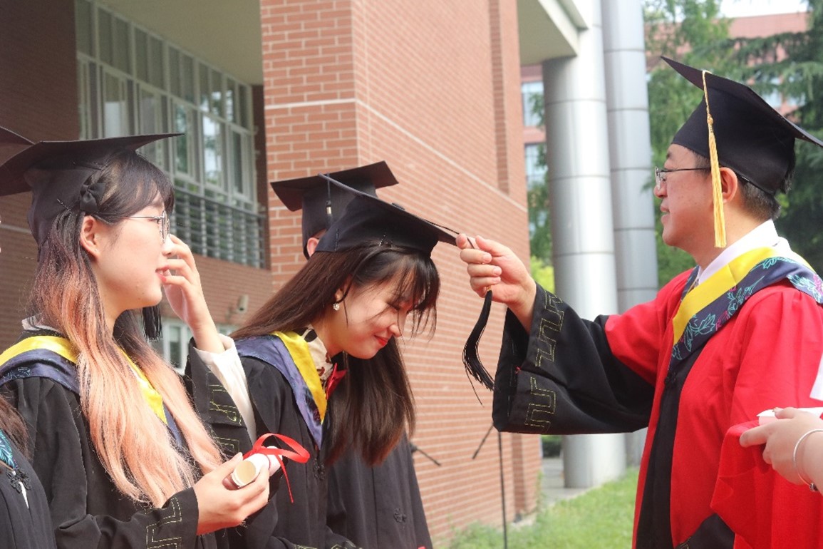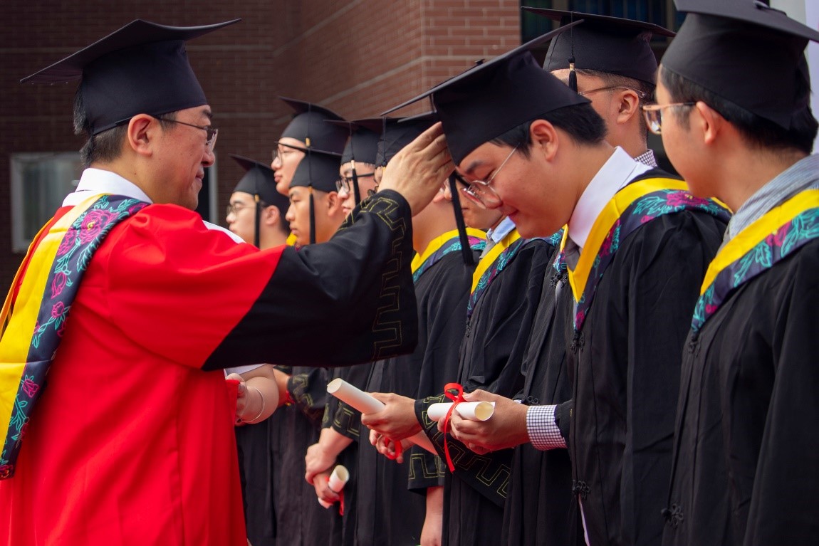 院长、学位评定分委员会主席、主礼教授朱旻昊为他们逐一拔穗, 200多名毕业生,200多次握手,200多次拨穗,每一个瞬间都将定格,在记忆的长河里熠熠生辉。