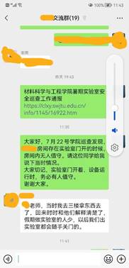 关于切实加强高温天气实验室安全管理的通知》,要求全体师生务必高度重视实验室安全,提高安全意识,认真遵守实验室安全规范和操作规程,每天(含双休日)定期排查实验室安全隐患,一经发现立即整改。