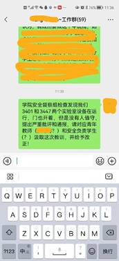 上述安全问题已由实验室安全主管通过微信或电话联系实验室负责人,要求及时整改。实验室安全主管约谈后,8月份学院对整改事项进行了“回头看”,相关实验室负责人以及学生党员巡查队现场核实,检查结果显示相关安全问题引起了高度重视并已得到整改。