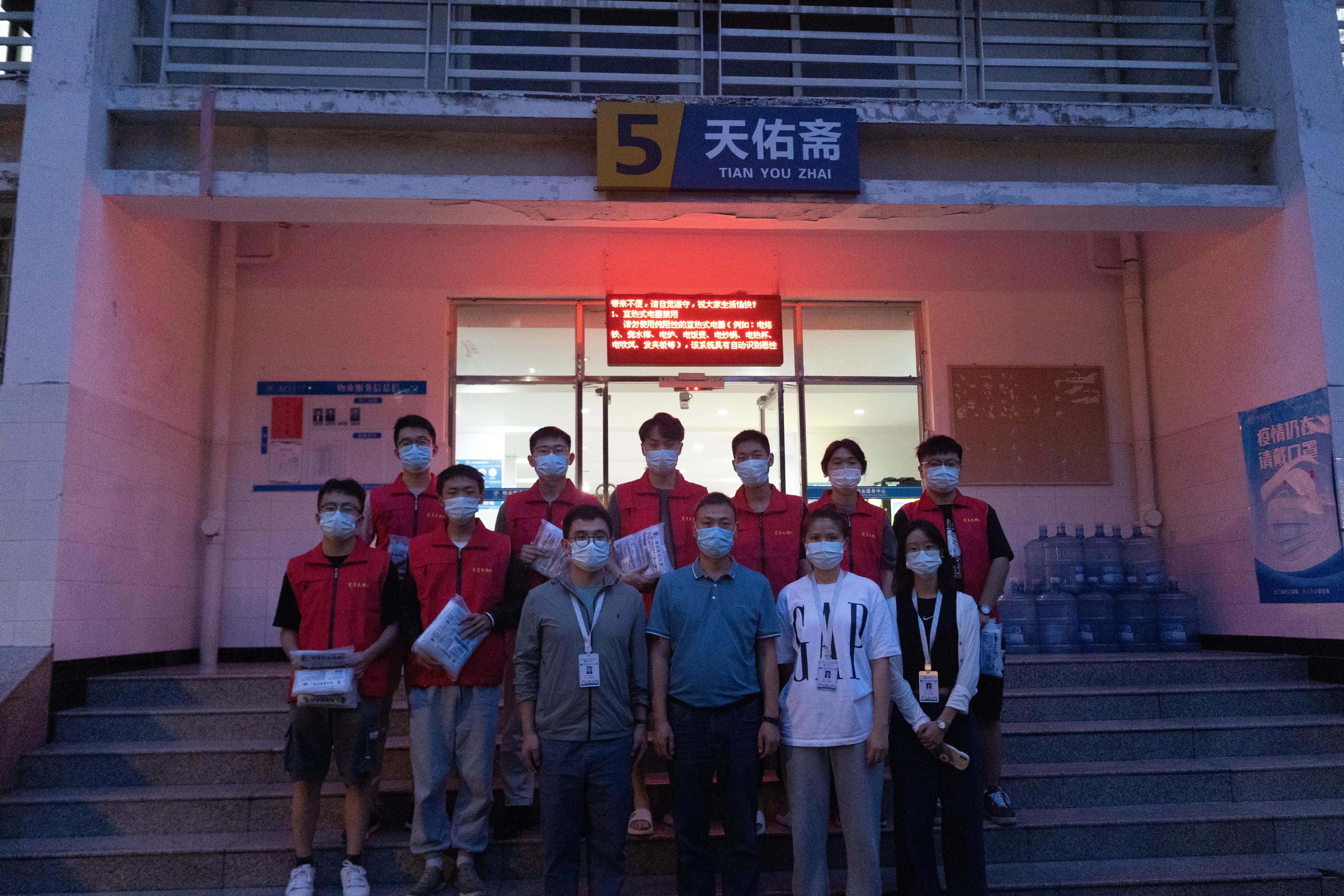 党员同志积极响应党组织的号召,在鲜红的党旗下迅速集结,为同学们送去防疫物资,用青春的迅猛速度、青春的火热温度、青春的担当态度,为同学们的防疫安全贡献力量。