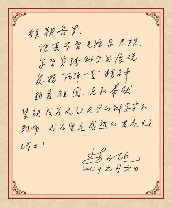 “两弹一星”精神穿越时空,激励和鼓舞着徐轶团队的老师和学生们不断朝着科技强国的目标前进。徐轶立志传承发扬“两弹一星”精神,牢固树立热爱祖国、无私奉献的爱国主义情怀,永远保持自力更生、艰苦奋斗的优良传统,不断发扬大力协同、勇于登攀的集体主义和科学创新精神。