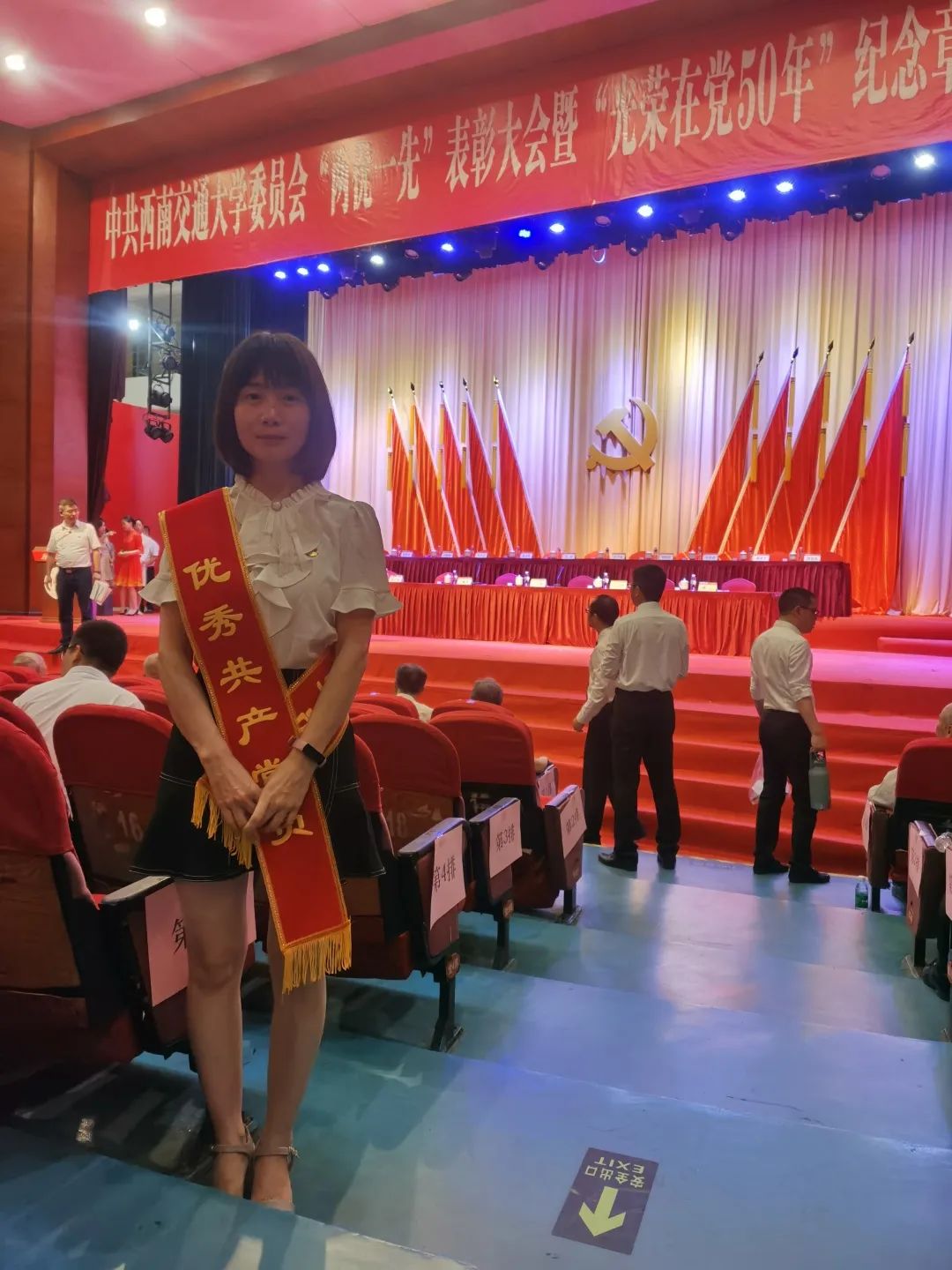 她忠诚于党和国家,奋斗在教育与科研事业一线,热爱工作,锐意进取,开拓创新,在学校党委2019—2021年度“两优一先”评选中获得“优秀共产党员”荣誉称号。