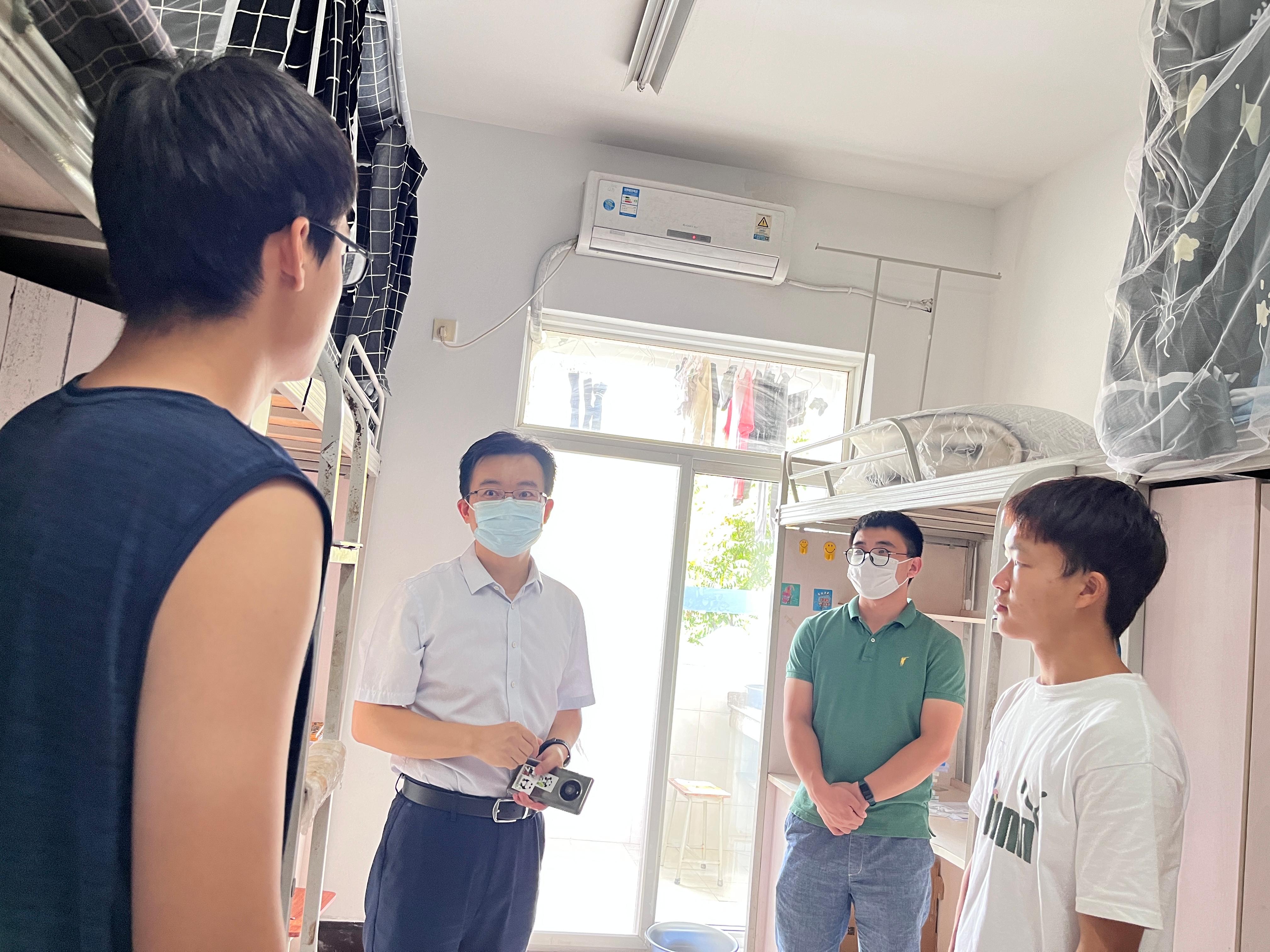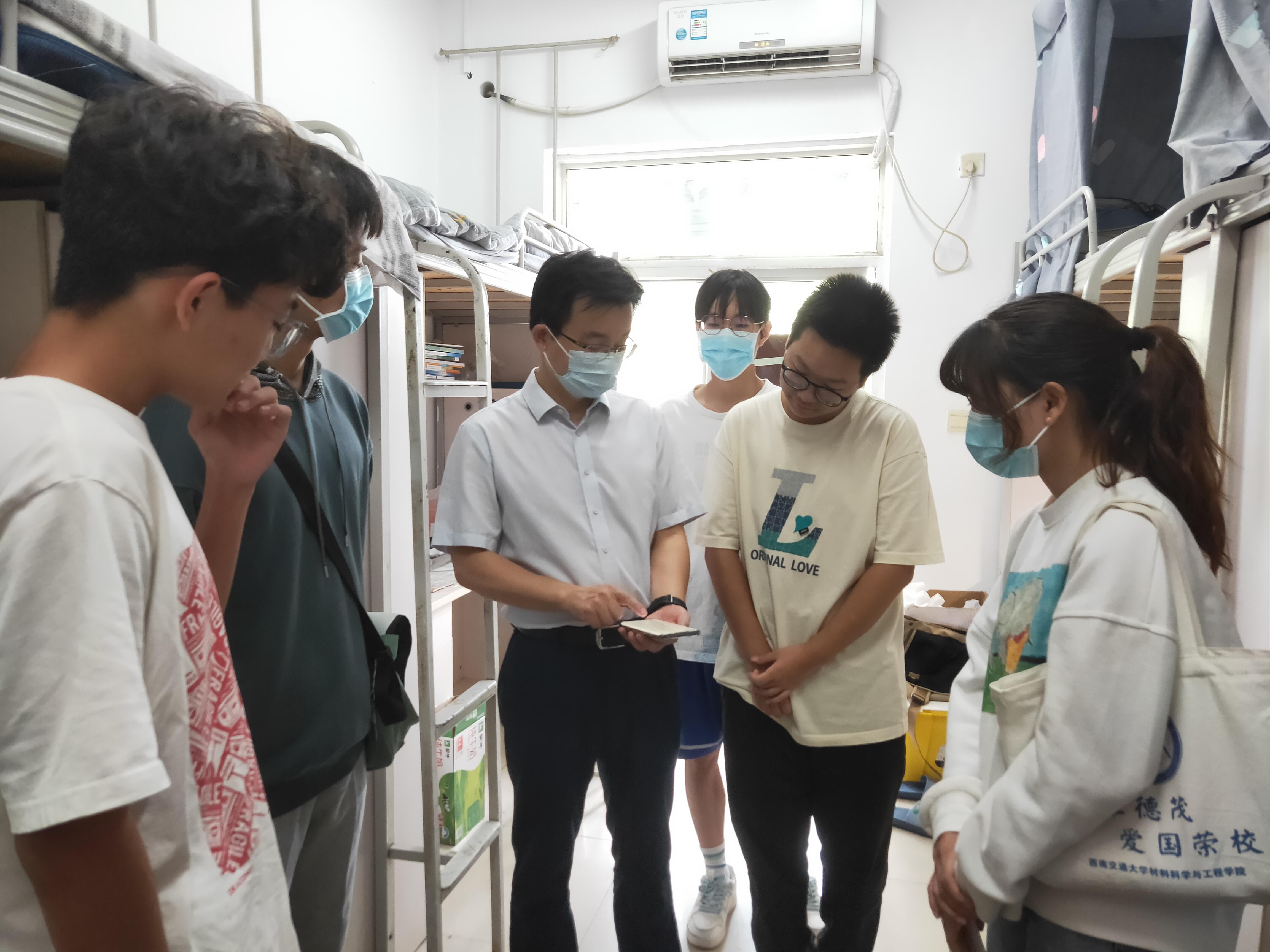 9月9日下午,学院党委书记陈勇代表学院党政班子在中秋节前一天深入学生公寓慰问2022级本科新生,辅导员老师郑纪伟、王誉静、罗莉一同前往。陈勇与同学们亲切交流,关心同学们的学习生活情况,鼓励他们好好学习,不要沉迷游戏。陈勇叮嘱同学们不要让“躺平”成为自己停滞不前的借口,要尽早明确新的奋斗目标,规划好大学生涯,培养优良的习惯,有大志向、大格局、大情怀。9月5日中午,甘孜泸定发生6.8级地震,学校震感明显。不少外省的同学第一次经历地震,陈勇专门询问了同学们地震中的感受,结合自身经历告诉同学们在交大学习不要担心地震。