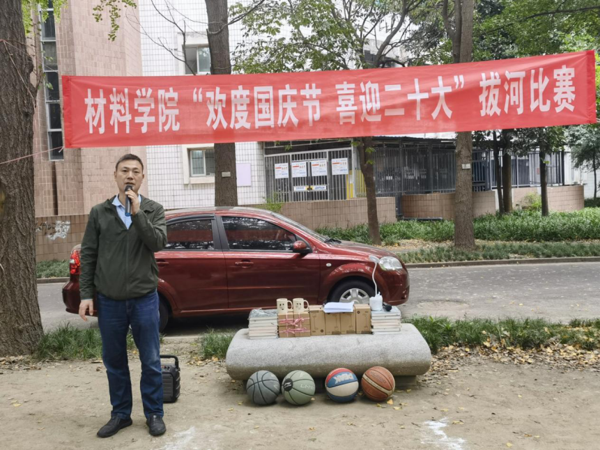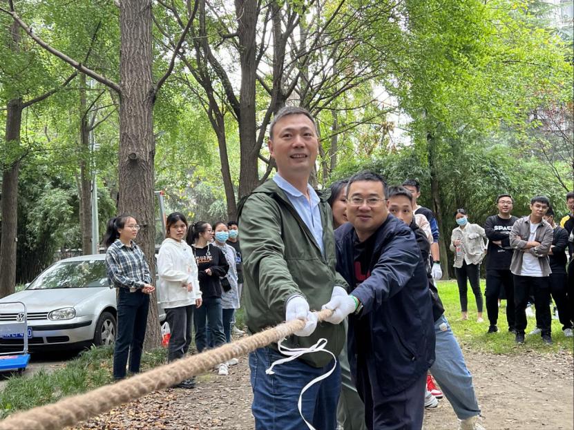 研究生会承办的“欢度国庆节 喜迎二十大”的拔河比赛和趣味活动,于10月5日下午在九里校区3号楼楼下举行,本次活动邀请全体在校且无实验任务的研究生参加。学院党委副书记章春军,副院长冷永祥,副院长王勇,本科生辅导员郑纪伟,研究生辅导员罗丹、梁喻嘉、廖妙威、苏星和徐励漪和200多名研究生参加了本次活动。
