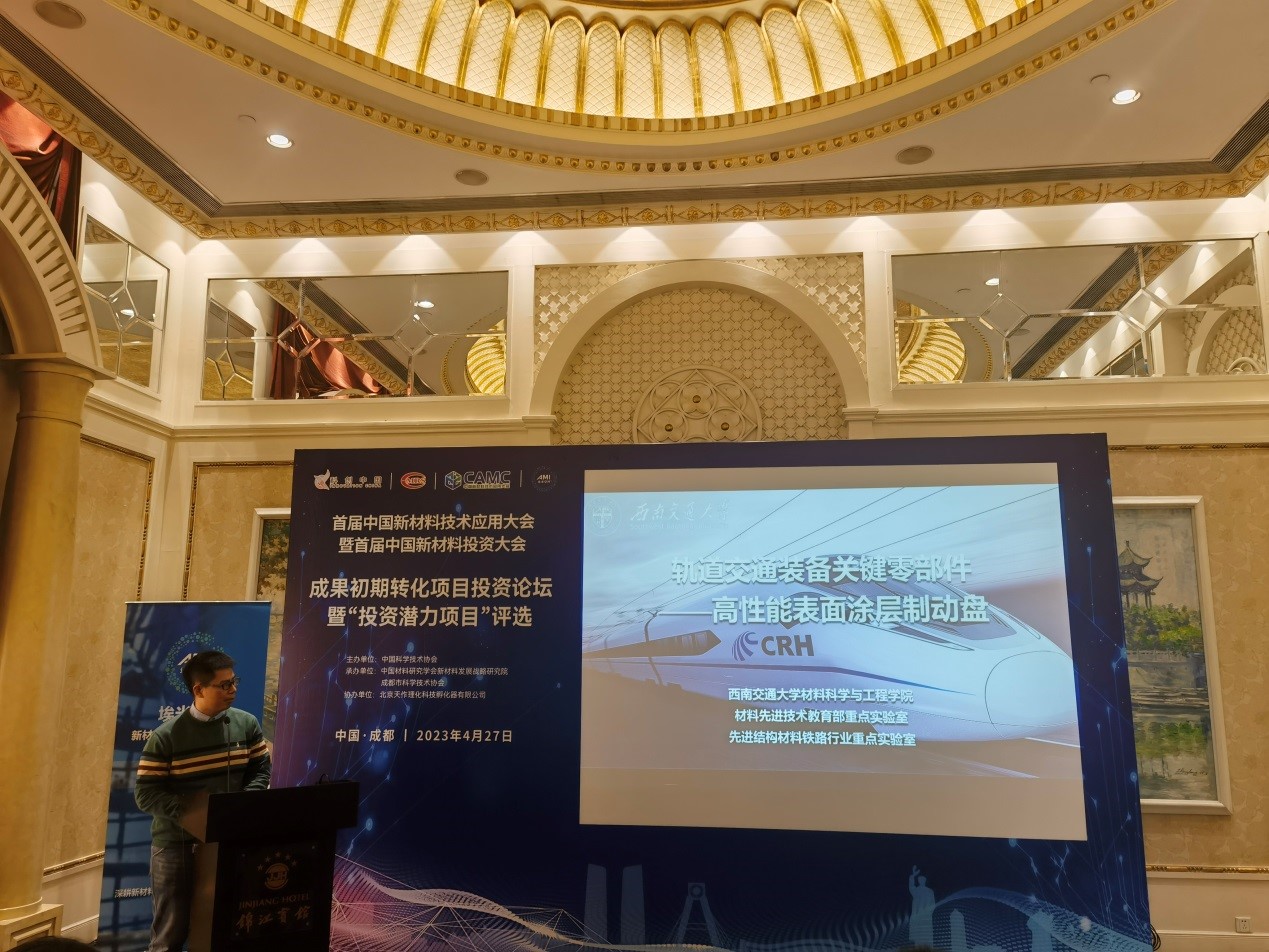 推荐的科技成果转化项目“轨道交通装备关键零部件高性能表面涂层制动盘”获大会颁发的“投资潜力项目奖”。