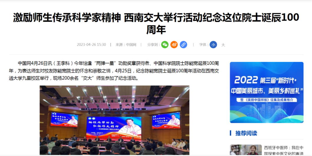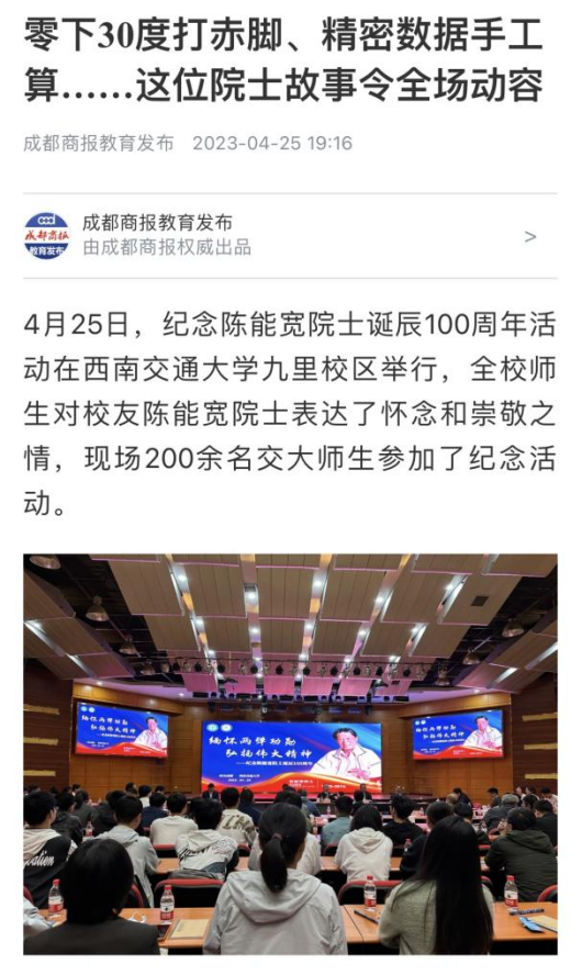 中国网:激励师生传承科学家精神 西南交大举行活动纪念这位院士诞辰100周年
