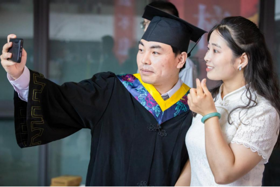 切下毕业蛋糕,共同的手是材子材师们的真情显露