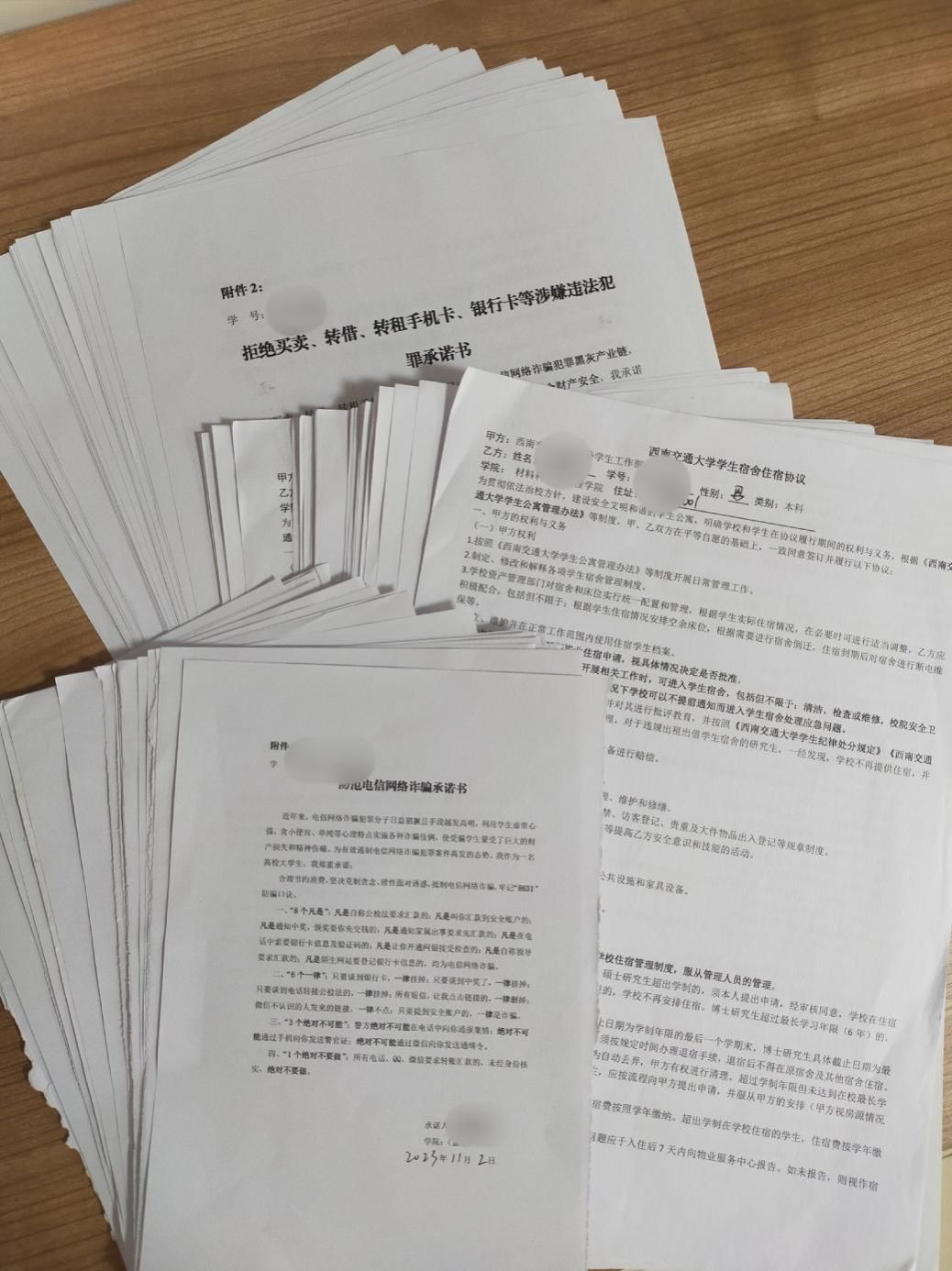 防范于心,反诈于行。随着网络的飞速发展,电信诈骗案件频频发生,诈骗手段花样百出,令人防不胜防。各班通过电信诈骗基本类型、电信诈骗手机号归属运营商分析、个人信息泄露途径、诈骗案例讲解等方面,向同学们讲解了不同类型网络诈骗的方式及其本质与特征,让同学们对网络诈骗的防范有了更为清晰的认识。同时,学院组织全体学生签订《防范电信网络诈骗承诺书》、《拒绝买卖、转借、转租手机卡、银行卡等涉嫌违法犯罪承诺书》,注册“蓉城反诈”小程序,开启来电预警功能。