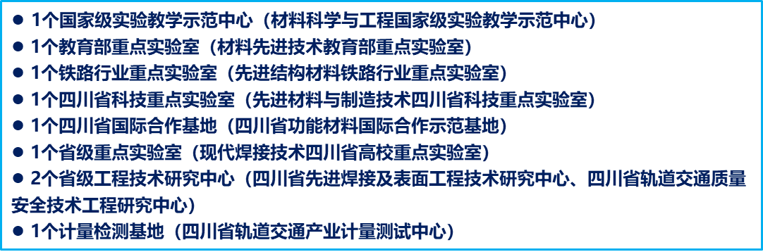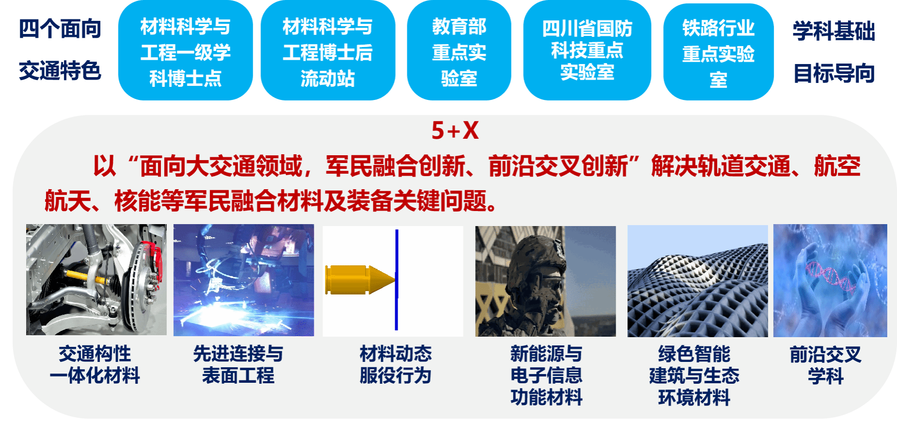 1. 学科整体实力强,轨道交通特色突出。西南交通大学是我国轨道交通人才培养与科学研究发源地,材料学科聚焦于国家“交通强国”重大战略,致力于轨道交通材料国产化升级创新,形成了从轨道交通材料设计理论与方法、先进成型制备、先进焊接与连接、全生命周期服役安全可靠性评价的理论、技术研究体系,全面支撑了国家轨道交通材料自主自强,引领了未来轨道交通发展方向,建设形成了以轨道交通材料为特色的人才培养和科技创新基地。ESI学科排名稳步提升,晋位到全球第190位(截止2024年1月),居全球前1.39‰。