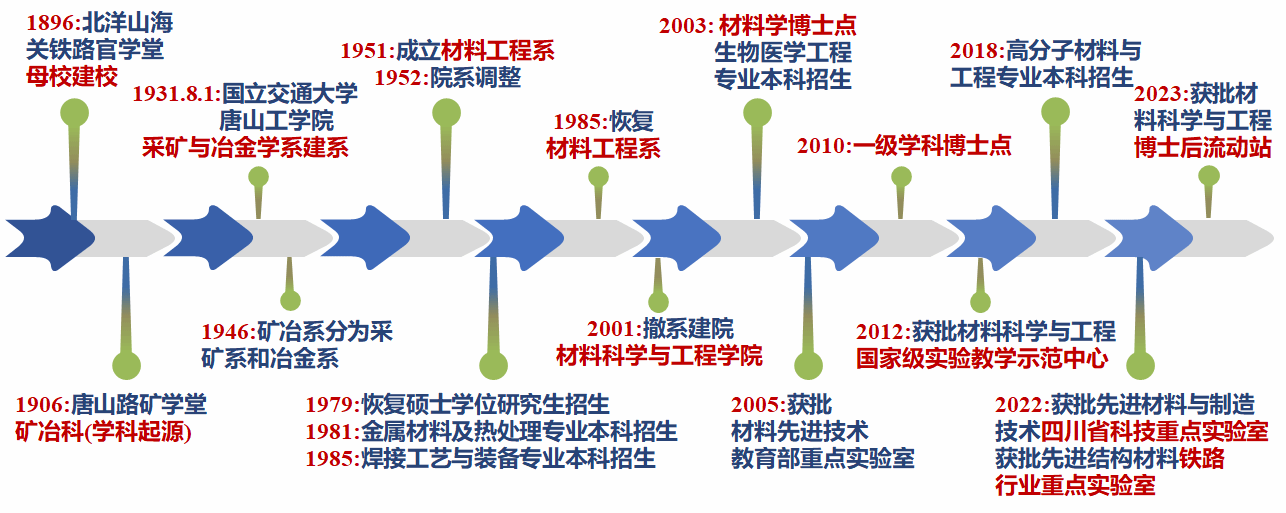 110多年来,学院孕育了一大批卓有建树的材料学科专业人才,包括3位“两弹一星”功勋奖章获得者和16位中国科学院和工程院院士。为国家经济建设和社会发展做出了重要贡献,特别是在轨道交通和国防领域功勋卓著。