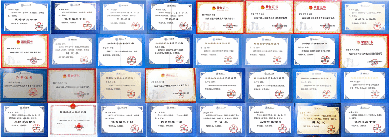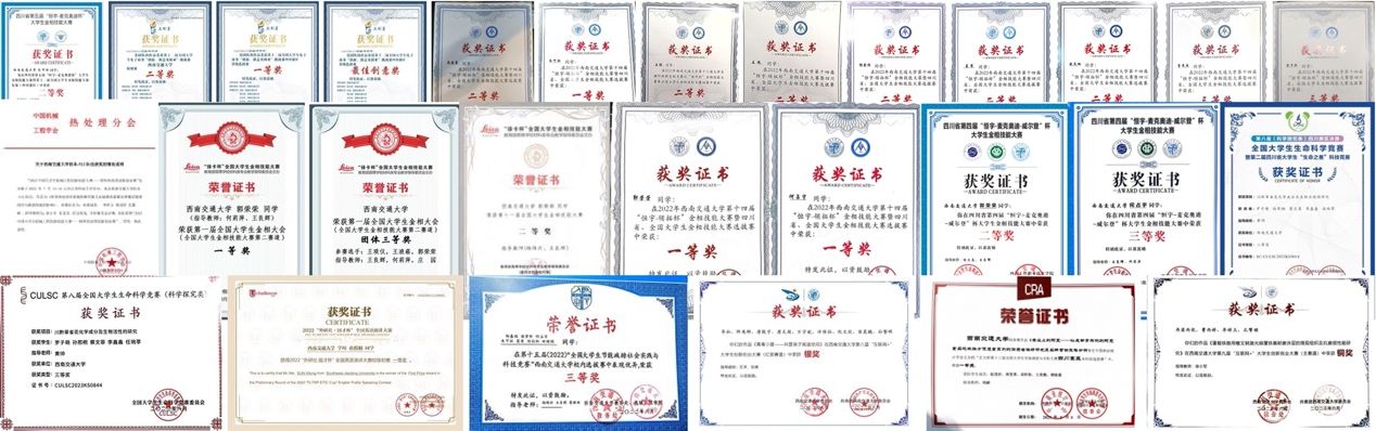 班级同学专心科研,成果突出。27人次参与科研项目20项,其中国家级、省级SRTP各3项。实用新型专利获批1项。全额资助的公派出国科研项目1人。参与学科竞赛38人次,获省部级及以上奖励12项,其中国家级一等奖1项。