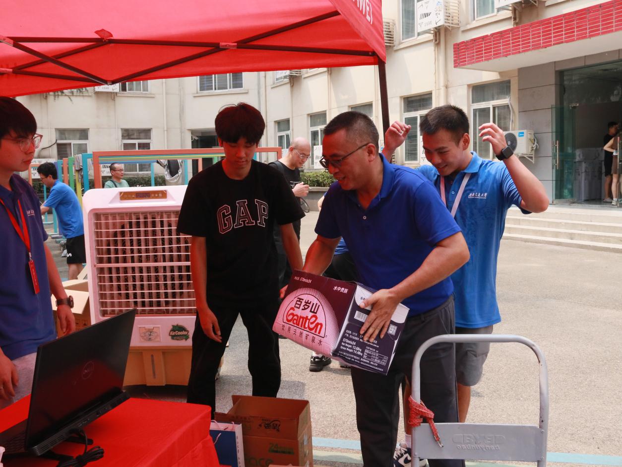 王良辉老师代表学院工会为迎新现场送去消暑佳品,并在现场关心了解新生报到情况,鼓励大家保持良好的精神状态做好迎新工作,展示大发在线体育投注平台