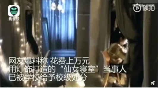 2019年初,一段“美女研究生打造仙女寝室”的视频热传,打造该寝室的学生确保“没有任何安全隐患”。随后,该行为被中国消防 “点名拆除”,当事人受到纪律处分。