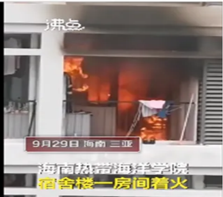 2020年9月29日,位于三亚的海南热带海洋学院宿舍楼着火。学校后勤工作人员称,疑似学生使用电器不当造成火灾,火势一度凶猛,所幸没有造成人员伤亡
