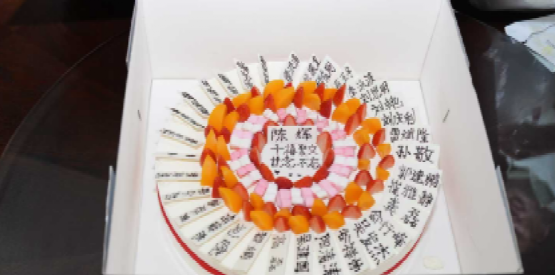 12:00,刚刚结束学术会议的学院院长陈辉教授来到现场,他代表学院党政班子热烈欢迎2000级校友回家,欢迎校友们为学校和学院发展建言献策。随后,他亲自为校友们切分写着每位聚会校友、老师名字的团聚蛋糕,活动在热烈的掌声中达到高潮。