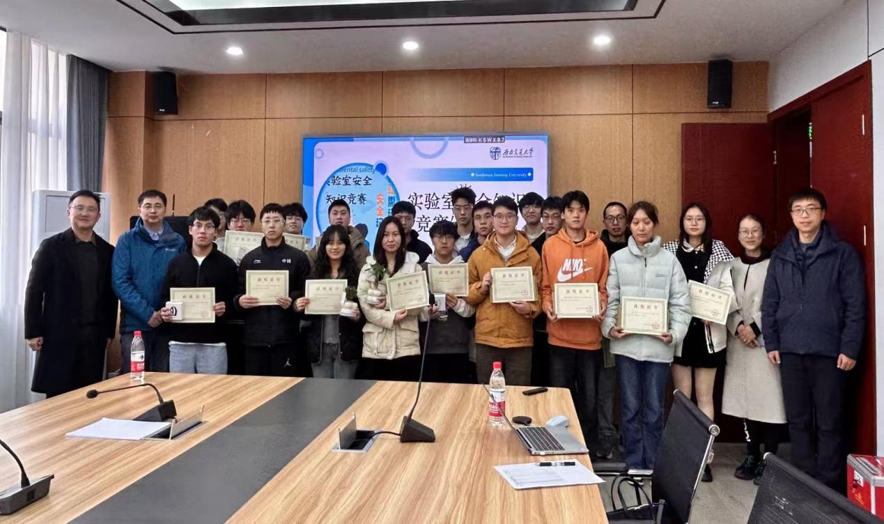 蒋小松副院长、金材系主任徐轶教授和曾迎老师为获奖同学颁奖。蒋小松对获奖同学表示祝贺,并鼓励大家在今后的学习和实验中,继续严格遵守安全规范,确保实验安全。