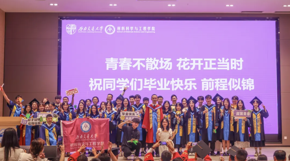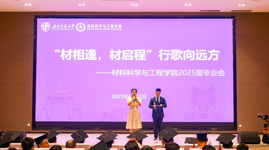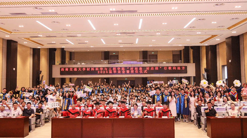 “材相逢 材启程——行歌向远方”2025届毕业会暨授位仪式在犀浦校区会议中心203隆重举行。学院党委书记沈哲,院长陈辉,党委副书记熊钰,副院长刘艳、李琦、蒋小松,工会主席王良辉出席。学院罗胜年、胥永刚、苟国庆、朱宗涛、孟凡彬、熊俊、徐轶教授;系主任姜欣、刘建华、吴影,班导师蔡创、靳龙、韩靖、甯红波、张松、祁青,全体辅导员,2025届毕业生及家长代表齐聚一堂,共同见证这一美好时刻。