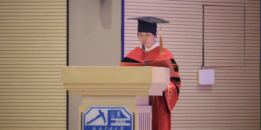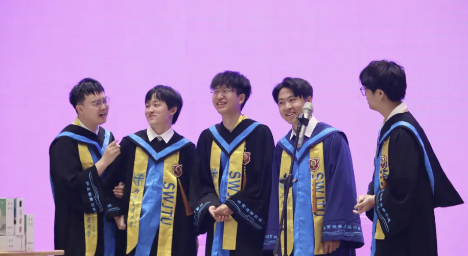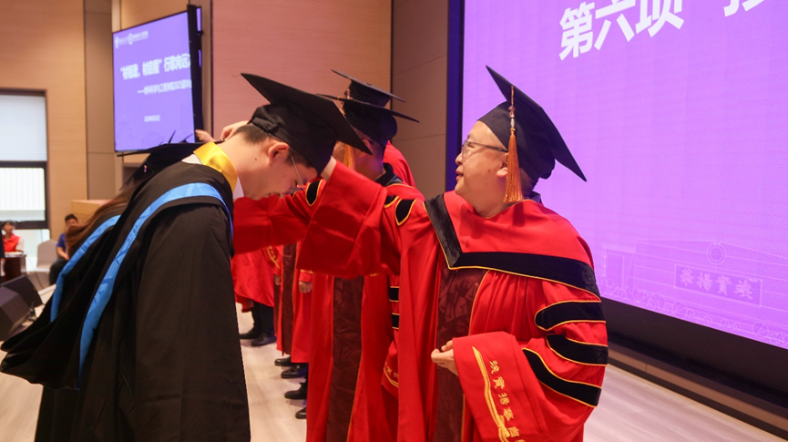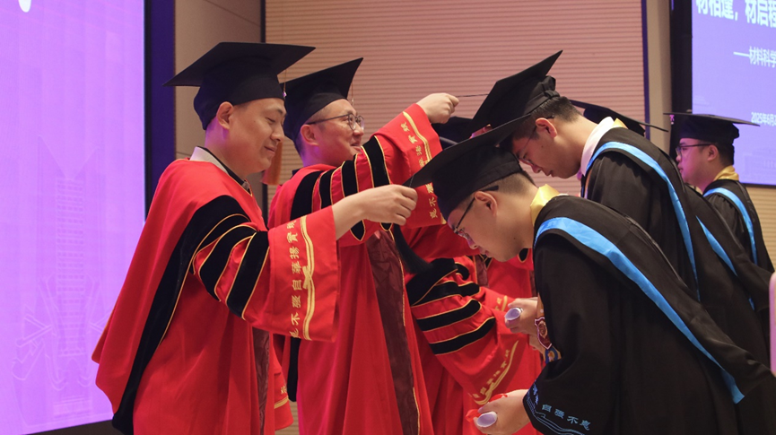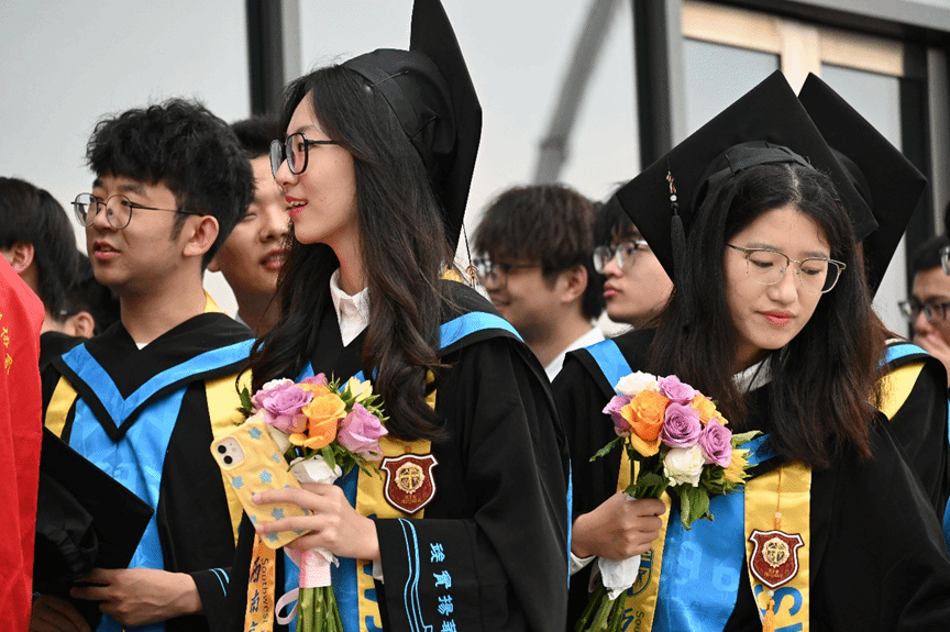 在师长们的殷切祝福余韵中,授位仪式正式启幕。材子们身着学位服依次登台,教授们为毕业生逐一拨正流苏,授予学位。流苏垂落的轨迹,为大学生活绘下圆满句点,更为青春远征扬起强韧的风帆。