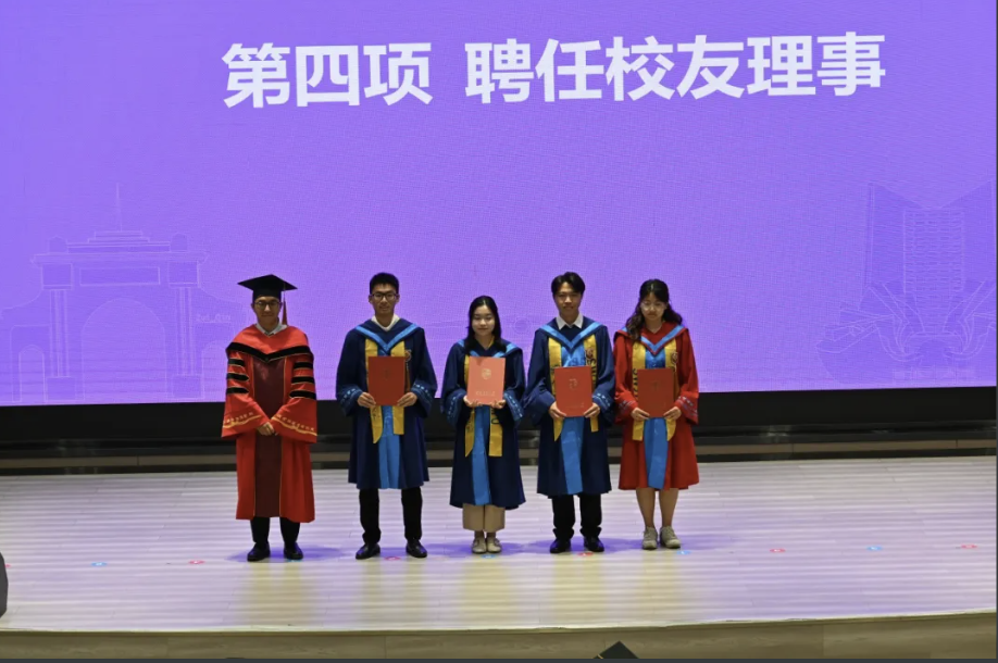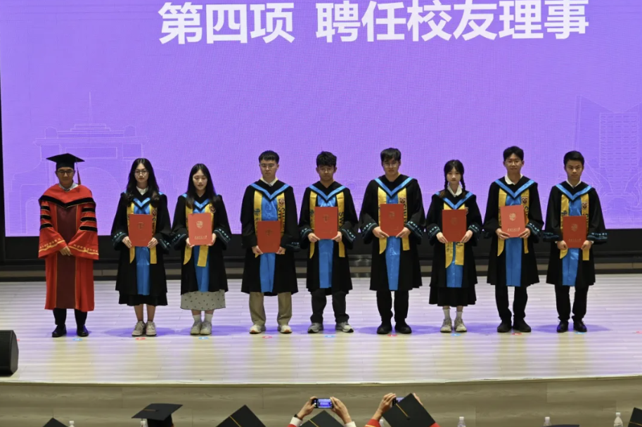 接下来,熊钰宣读本科、研究生省级优秀毕业生名单,蒋小松为其颁发证书,寄托对优秀毕业生的美好祝福和期盼。随后,刘艳宣读聘任本科、研究生校友理事名单,李琦为校友理事颁发聘书,希望受聘的校友理事不负重托,努力搭建交流、合作、服务的平台。