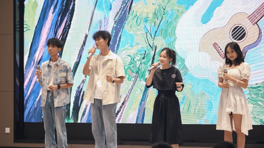 尾声将近,《篇章》旋律在会场漾开。当副歌“燃烧小小的梦”响起,台下师生应声相和,情不自胜上台同唱。