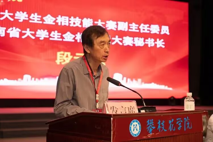 王兵对专家们莅临指导表示感谢,对全体参赛师生的到来表示热烈欢迎并预祝参赛同学取得优异成绩。段云彪在讲话中对历年来四川赛区在全国金相技能大赛中所取得的成绩给予了充分肯定,并鼓励和欢迎参赛选手攀登国赛。王良辉、蒋志强分别就赛事情况进行介绍,评委代表、参赛选手代表依次进行了发言。