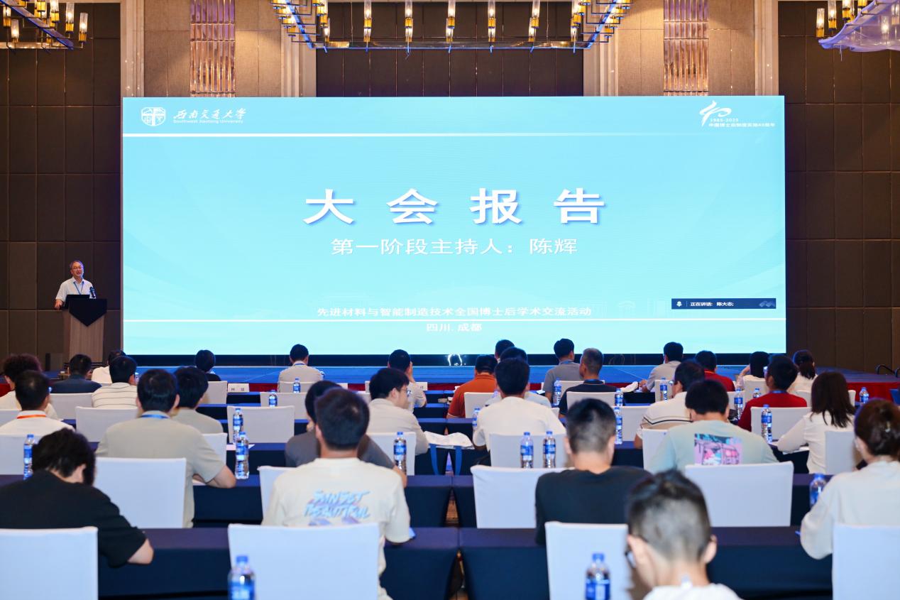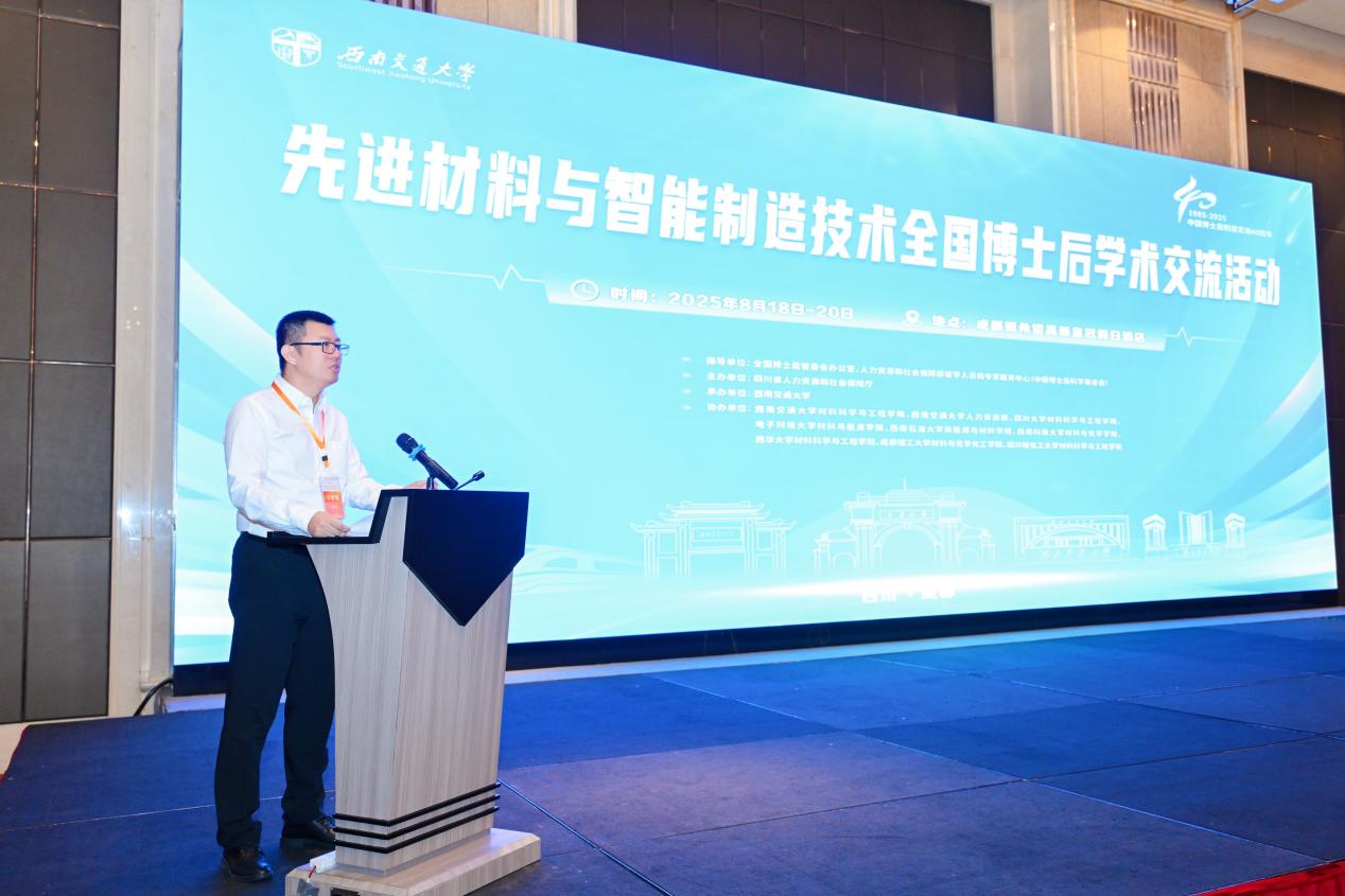 晏启祥致欢迎辞并向大会顺利召开表示祝贺。他着重介绍了学校的学科优势、办学特色与博士后培养成果,充分体现了学校对此项工作的高度重视。他强调,本次全国博士后学术交流活动以“先进材料与智能制造技术”为主题,汇聚了国内材料学科领域的专家、学者及青年人才,希望以此为契机构建产学研用深度融合的常态化合作机制,打造先进材料领域高端交流平台,围绕材料学科前沿、产业应用和人才培养,为推动相关技术高质量发展注入新动力;西南交通大学愿与各界携手,发挥材料学科优势,为建设交通强国、制造强国贡献力量。