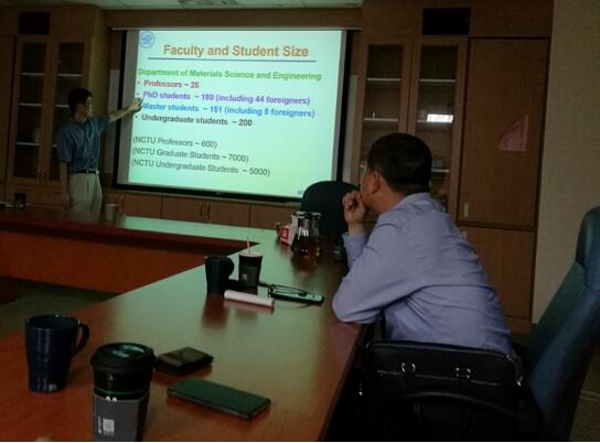 5月11日上午,交流团到访中兴大学材料系,和中兴大学前教务长呂福兴、材料系主任汪俊延教授等10余位教授进行了学术交流。