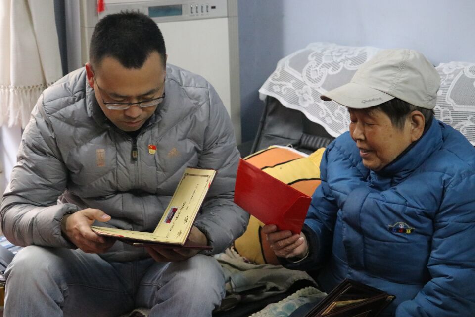 党委副书记(主持工作)贺剑老师代表学院党委、工会携材料青协三名志愿者在寒冬来临之际,前往九里校区北苑探望退休教师付淑珍,为付老送去学院的关怀与温暖。