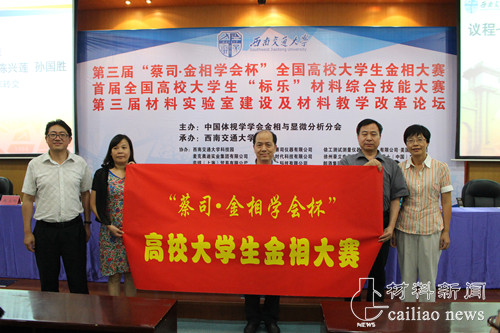西南交通大学圆满完成了赛事的全部任务。第四届“蔡司·金相学会杯”全国高校大学生金相大赛将由武汉科技大学承办。中国体视学学会金相与显微分析分会副理事长孟亮代表组委会向承办单位武汉科技大学代表授旗。武汉科技大学党委副书记孙国胜向与会师生介绍了武汉科技大学的基本情况。