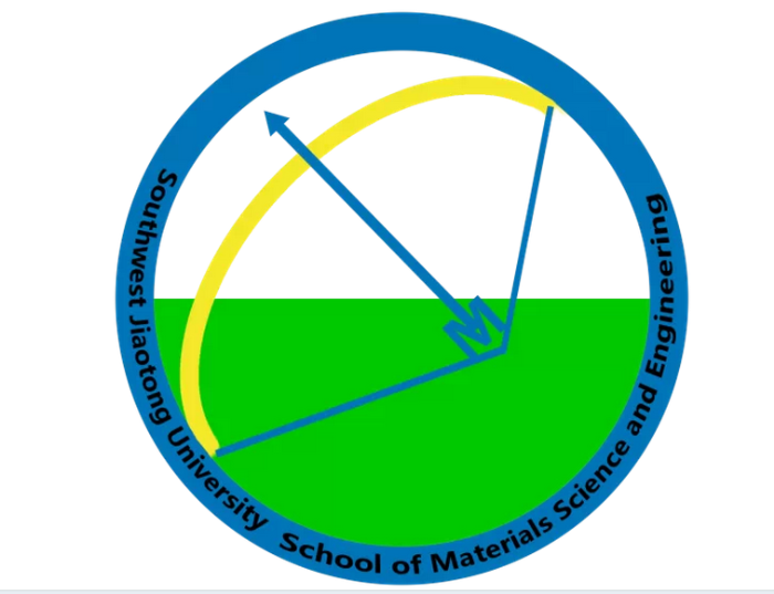 的学生团结友爱,有理想与抱负。字体下方放着一本打开的书其寓意为西南交通大学这个知识的根基,它如同一双大手托起这个“新材料”,此款徽标整体的色调为绿色系,寓意在开发新材料的同时也需要保证其与自然环境的融合即为“绿色材料”