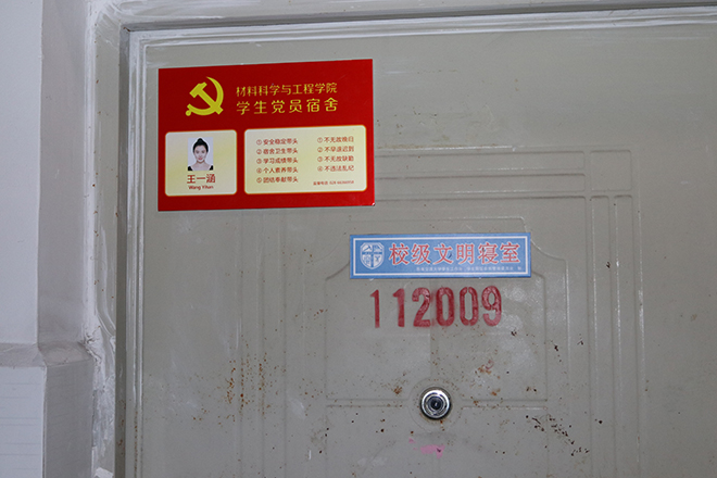 最后,学院本科生第二党支部同学,前往各党员粘贴党员宿舍门牌,并配合学院园园区工作建设,对部分学生宿舍进行了安全抽查。