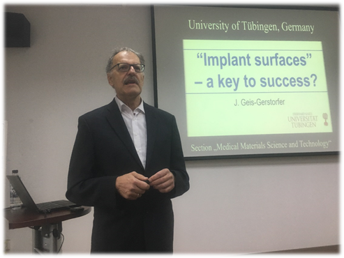 Geis-Gerstorfer教授此行参观了材料先进教育部重点实验室并留下了深刻印象。11月16日,Geis-Gerstorfer教授受邀为重点实验室做了题为“Dental implant surfaces – a key to success?“的学术报告,结合多年科研实践与学术成果,对口腔种植体生物材料的表面设计提出了独到见解。报告会气氛活跃,大发体育