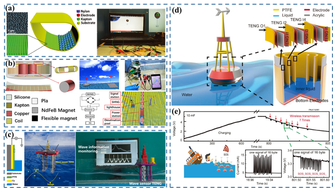 图11 摩擦纳米发电机的不同结构设计用于水波能量收集和传感。