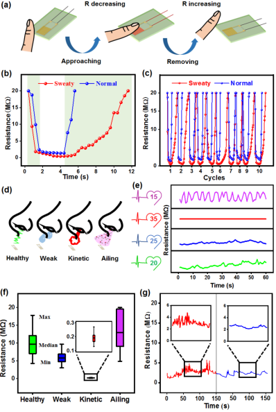 图四 ABHS用于非接触式的指纹湿度传感和呼吸监测系统