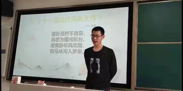 研讨课渐渐进入尾声,经过一轮又一轮的精彩比拼,同学们都各自展示自我风采,各显神通。接下来,同学们将通过朗诵的方式,真正融入诗词,感受其中的魅力。