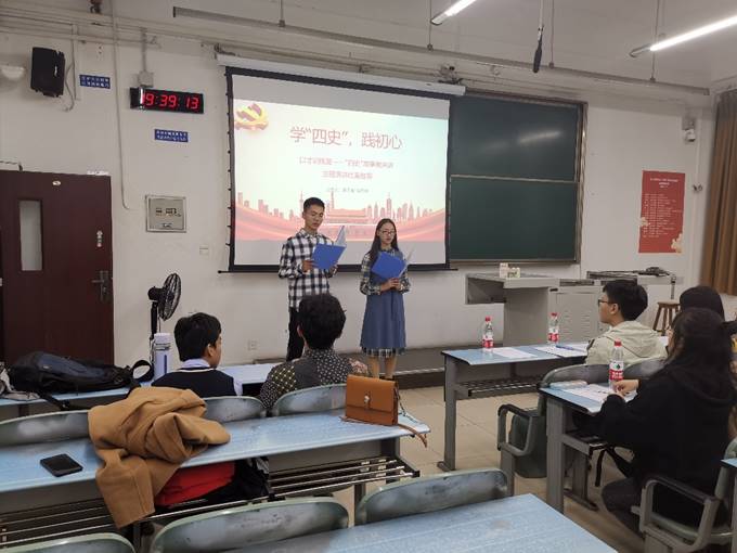 学生活动的全力支持表示衷心感谢,表扬了同学们在比赛中取得的进步,并和现场同学分享了 “四史”学习的重要意义。
