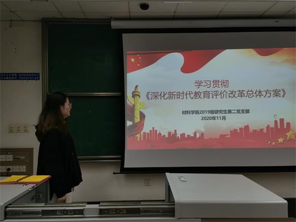 研究生第二党支部在逸夫馆4421召开第九次组织生活会,会议由周丹彤同志主持。本次会议同志们进行了关于《深化新时代教育评价改革总体方案》的学习。