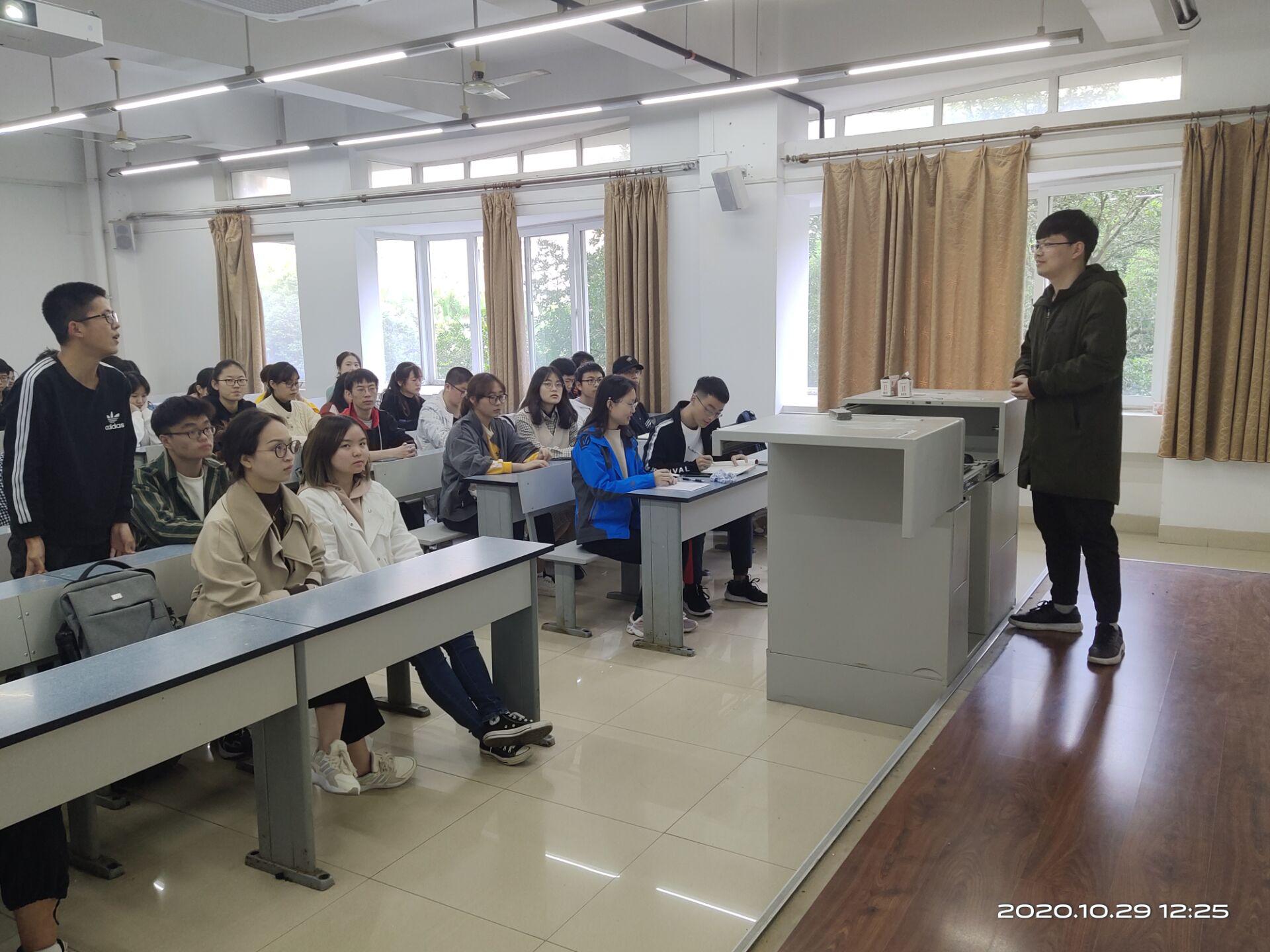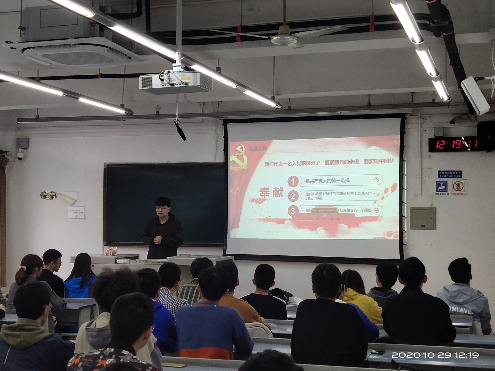2020年10月29日12:15,本科生第一党支部成员在X1225教室一起开了新学期的第二场组织生活会。进行“不忘初心,不负韶华”主题会议。党支部书记熊苏雅同志参与活动。本次活动由本一支部方鸿宇、刘红刚同志主持。