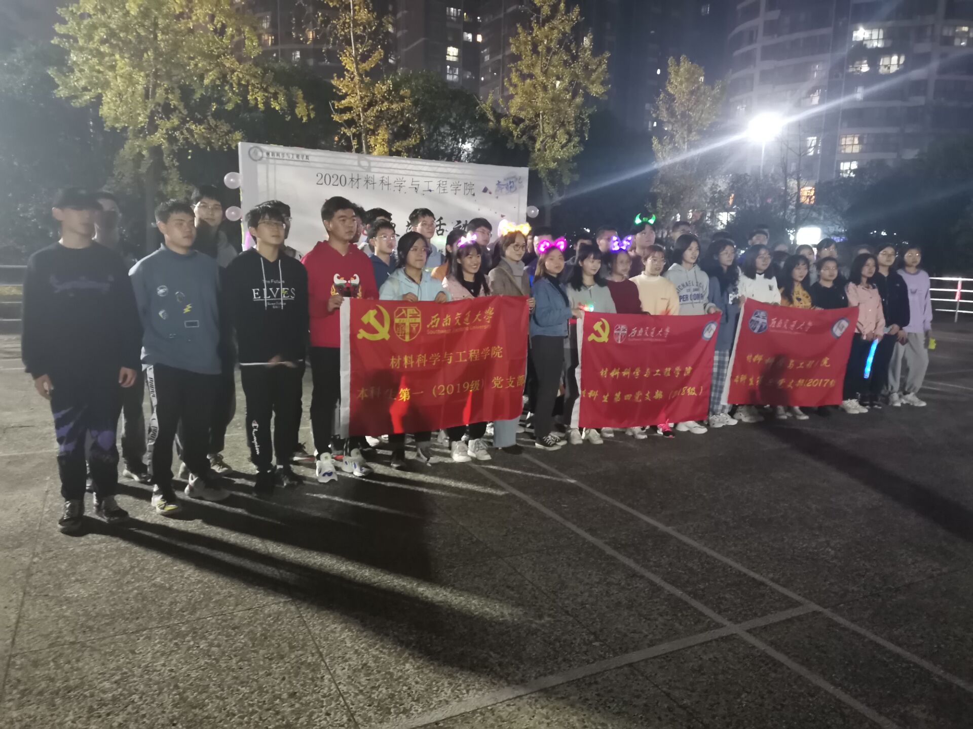 2020年11月19日19:30,本科生第一党支部成员在南区体育场参与了大发在线体育投注平台