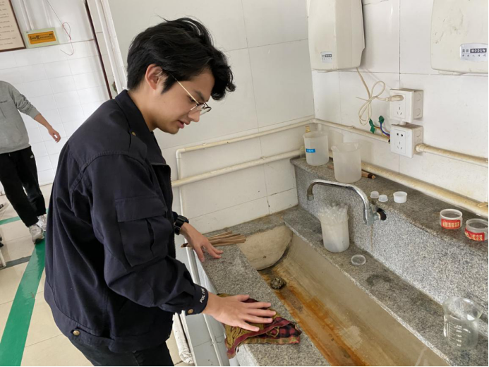 本科生第四(2018级)党支部志愿服务小组积极投身到打扫实验室的志愿服务中。
