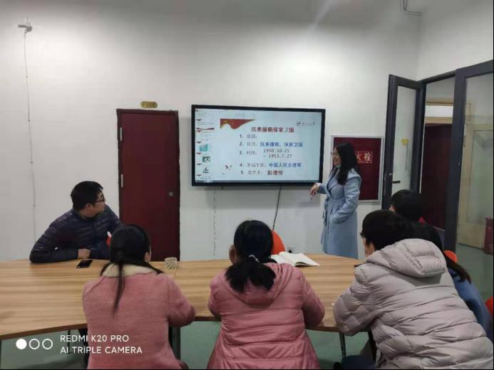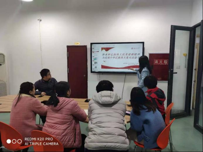 为纪念中国人民志愿军抗美援朝出国作战70周年,铭记历史,传承爱国精神,11月23日下午14时,西南交通大学材料科学与工程学院研究生第九党支部在支部书记严翼飞老师的带领下开展了“继承和弘扬伟大抗美援朝精神,为实现中华民族伟大复兴而奋斗”主题组织生活。本次主题活动旨在弘扬爱国主义为核心的伟大民族精神,激发党员的爱国热情,丰富党员的组织活动。